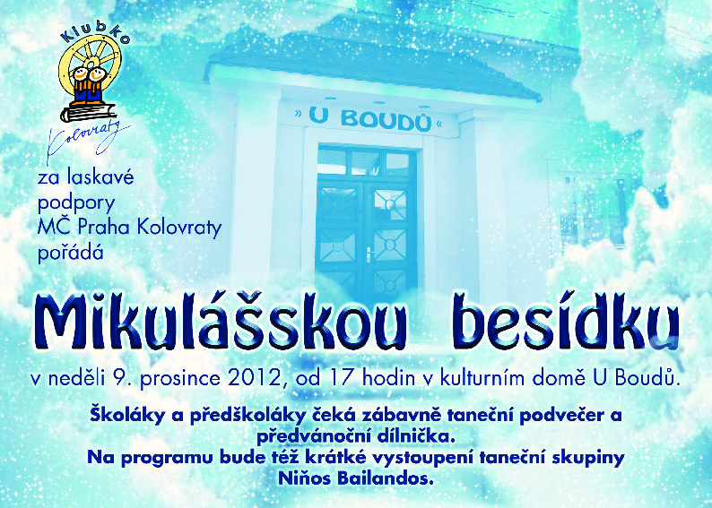 - MČ Praha 10 Kolovraty poskytla Klubku grant na pořádání halloweenské a mikulášské párty. Děkujeme za přidělení prostředků.